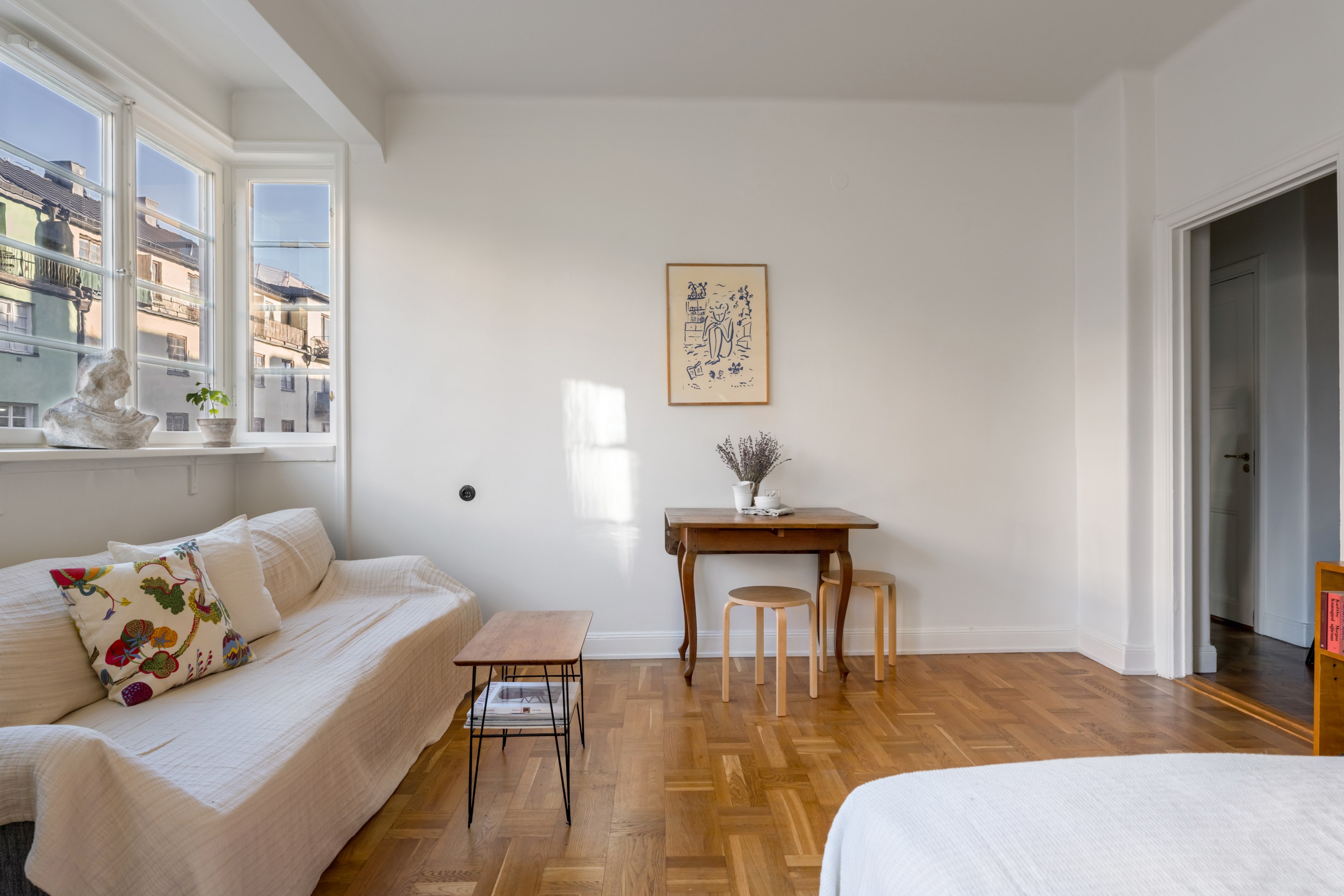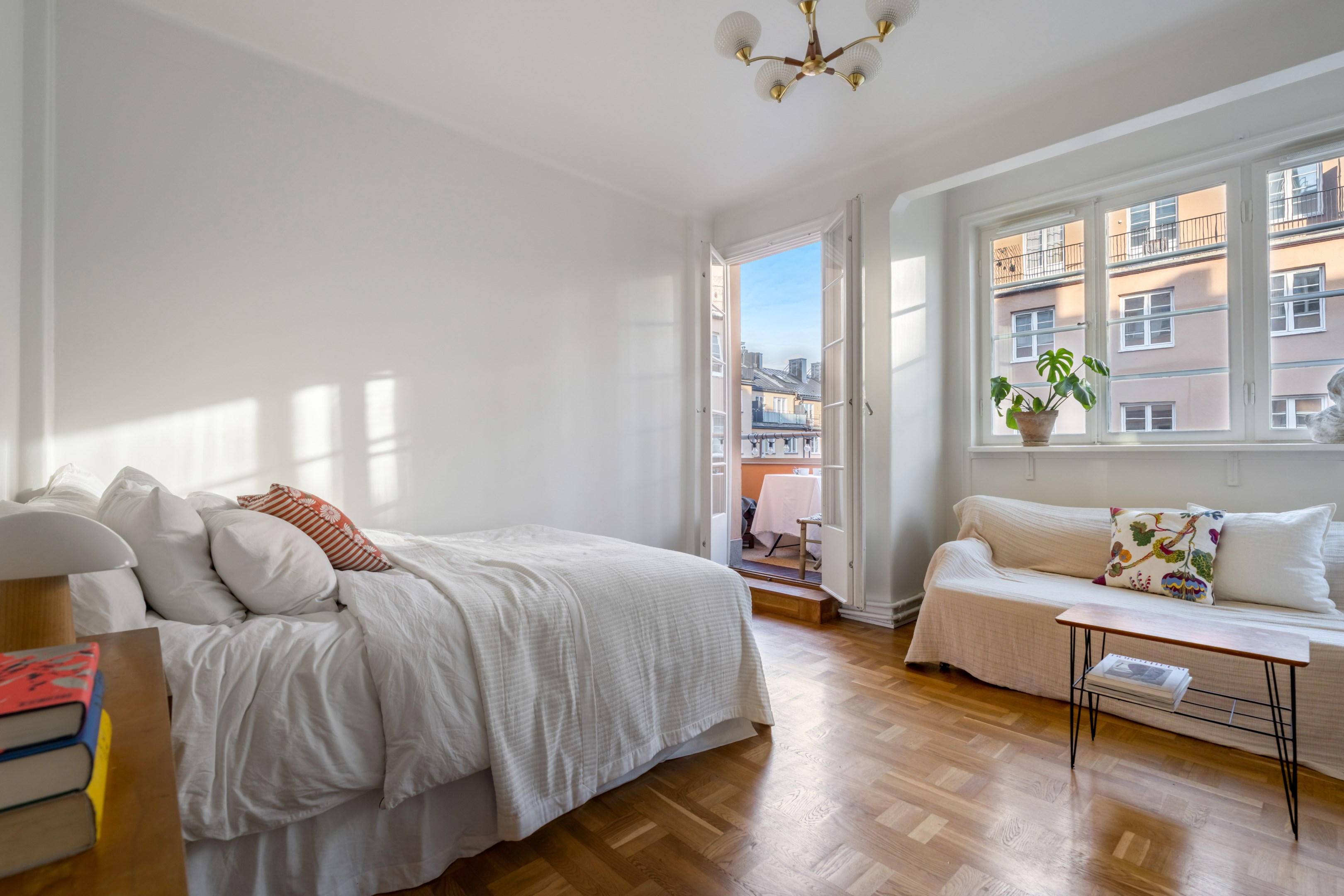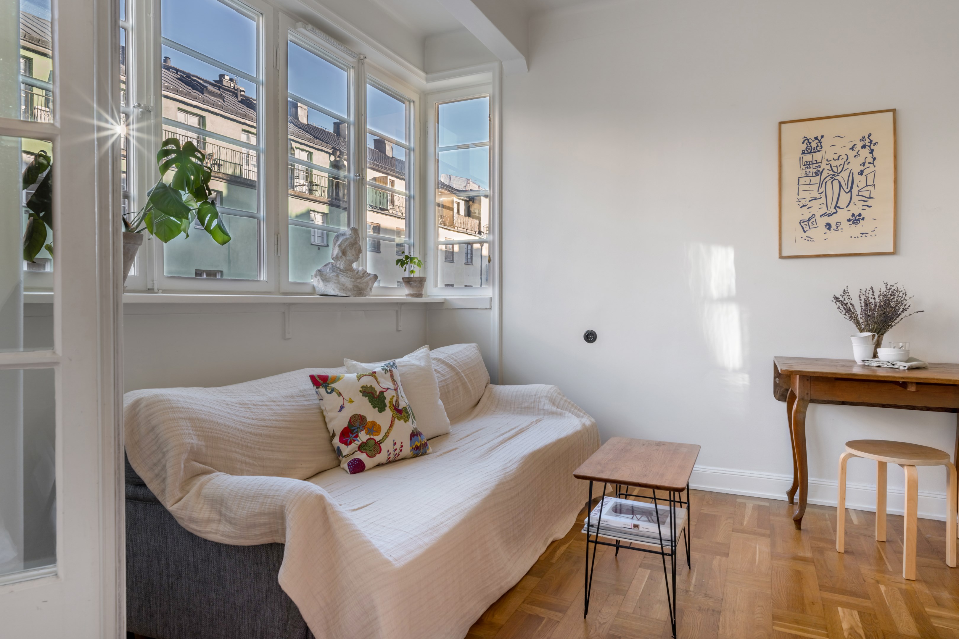 Mycket charmig lägenhet i hjärtat av Hornstull med ett ljust och högt läge i huset! Här erbjuds en ljus bostad med stora fönsterpartier och härlig utsikt och balkong.