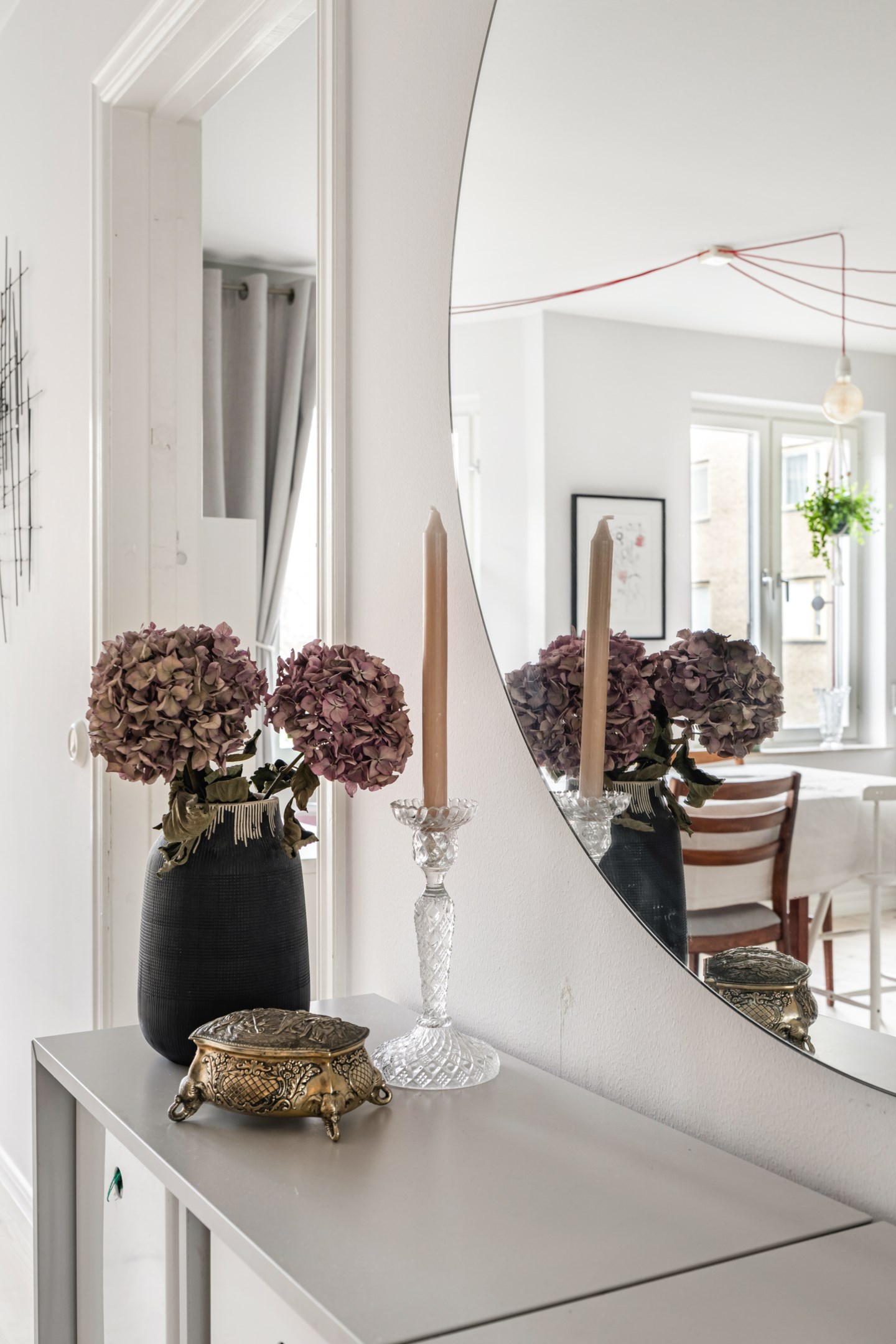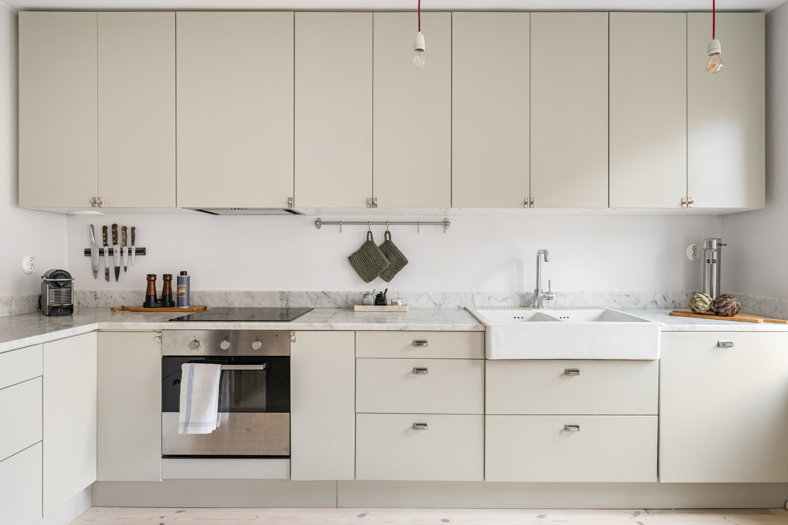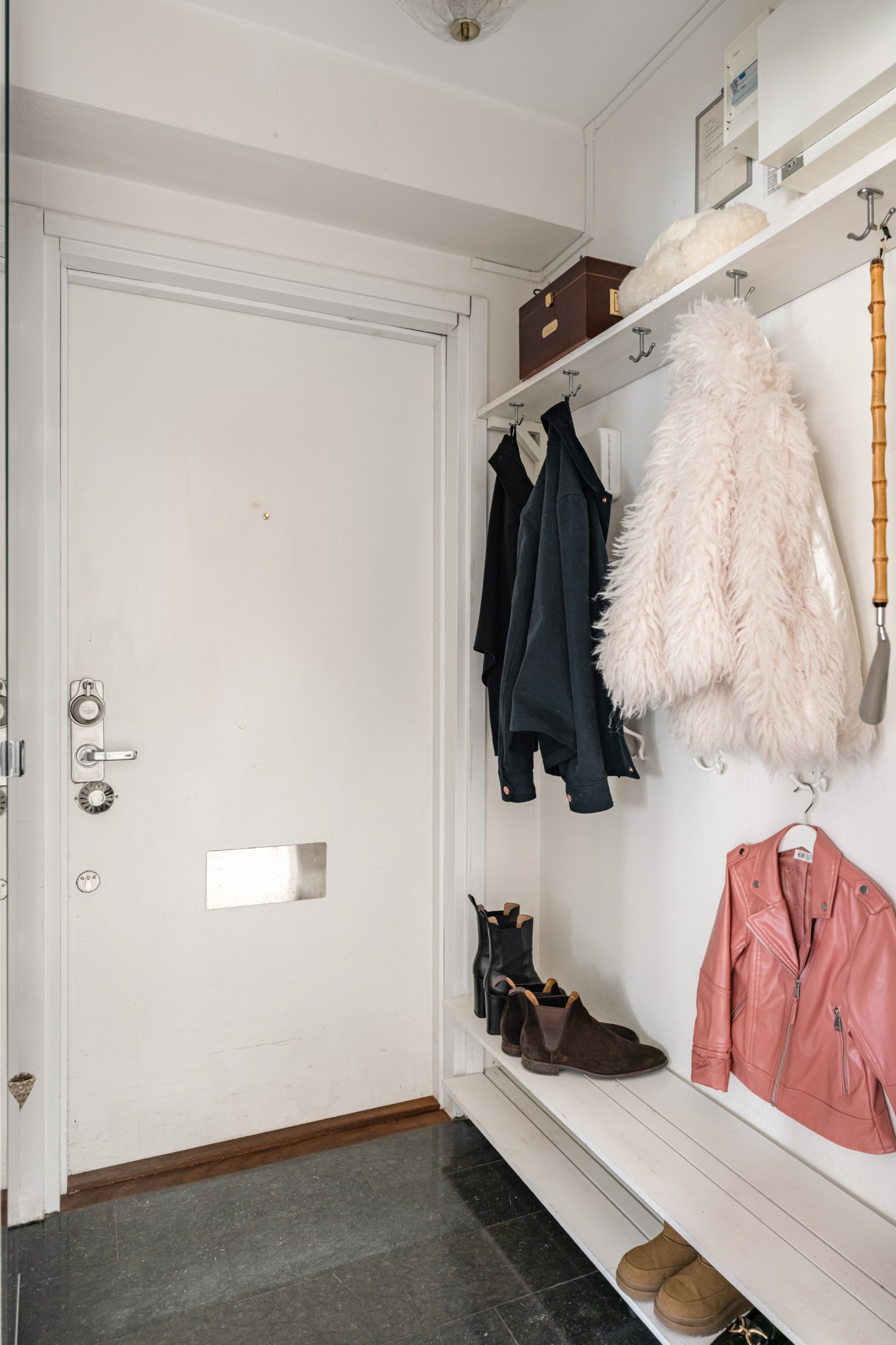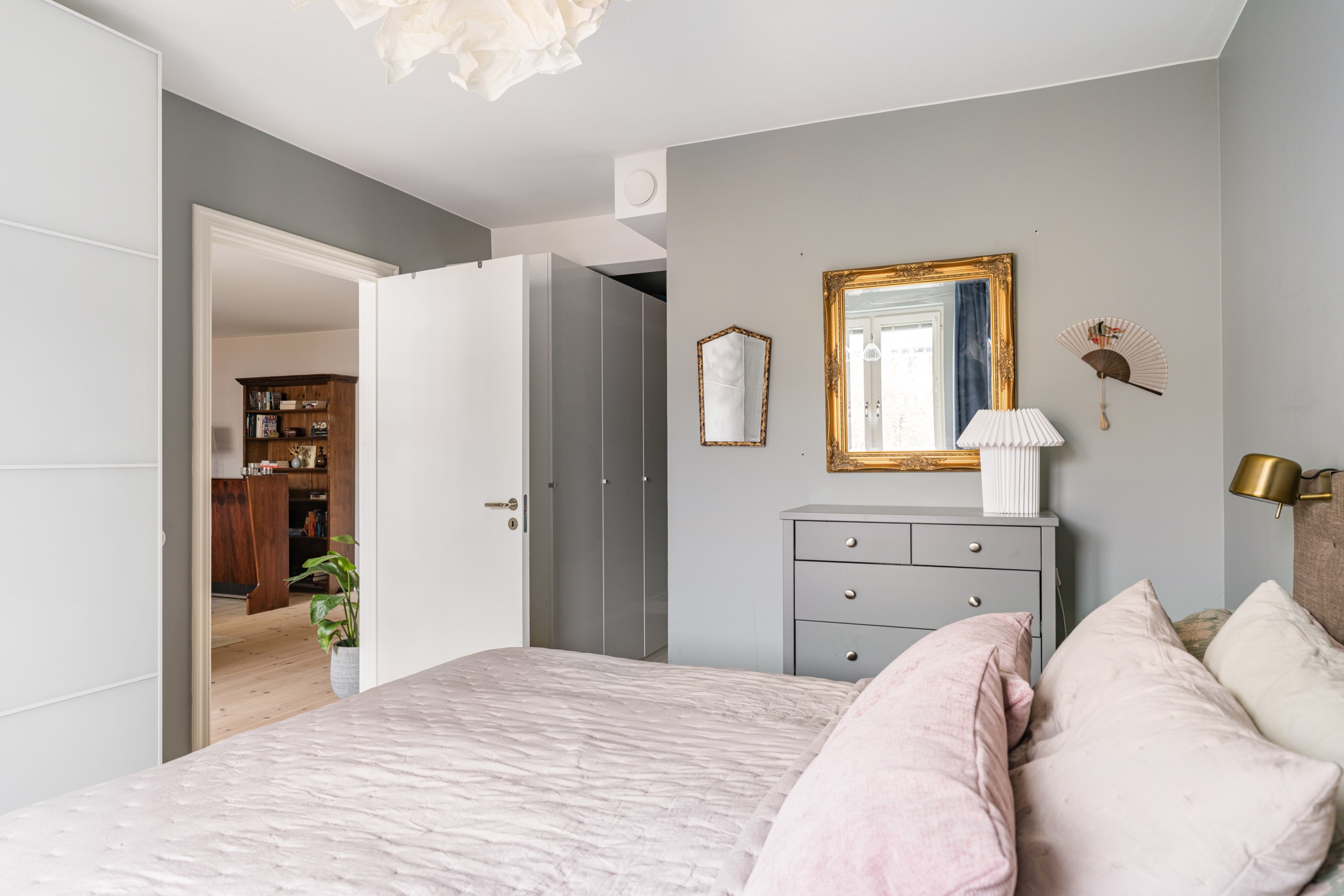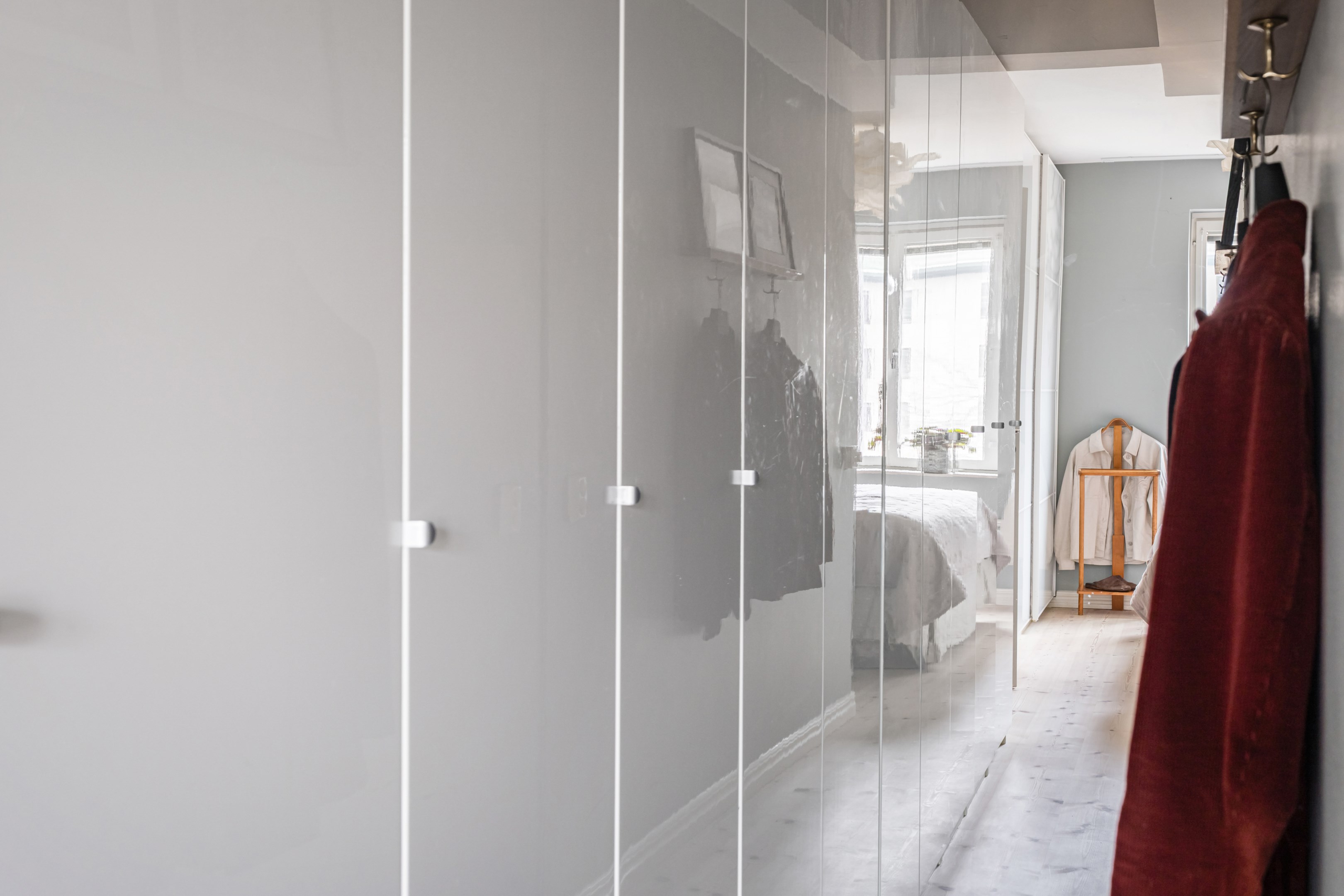 Här är en sällsynt välrenoverad och generös 3-rumslägenhet med fina och påkostade ytskikt och genomgående ljusa kulörer på såväl väggar som golv. Den sociala planlösningen mellan kök och vardagsrum ger ett härligt ljusflöde genom bostaden då den har fönster åt två håll. Stor inglasad balkong. Ljust furuparkettgolv (slipat och pigmenterat med hårdvaxolja 2024) som löper genom alla rum utan trösklar (endast till badrummet). Praktiskt slipat granitgolv i hall och klinkergolv i samma stil i badrum samt balkong (stil Marrakech).