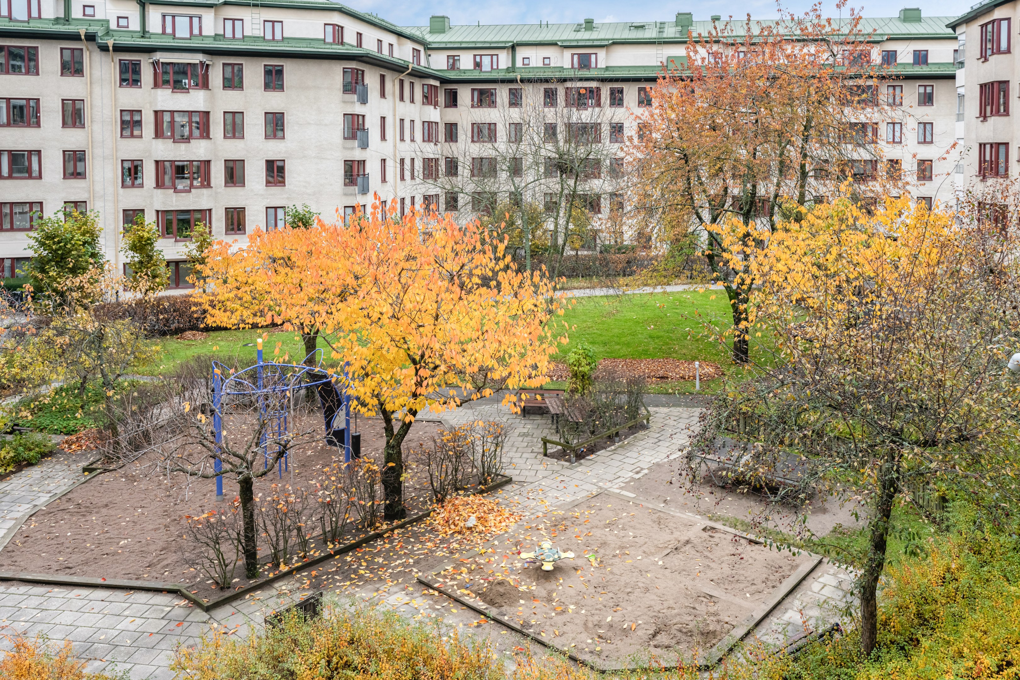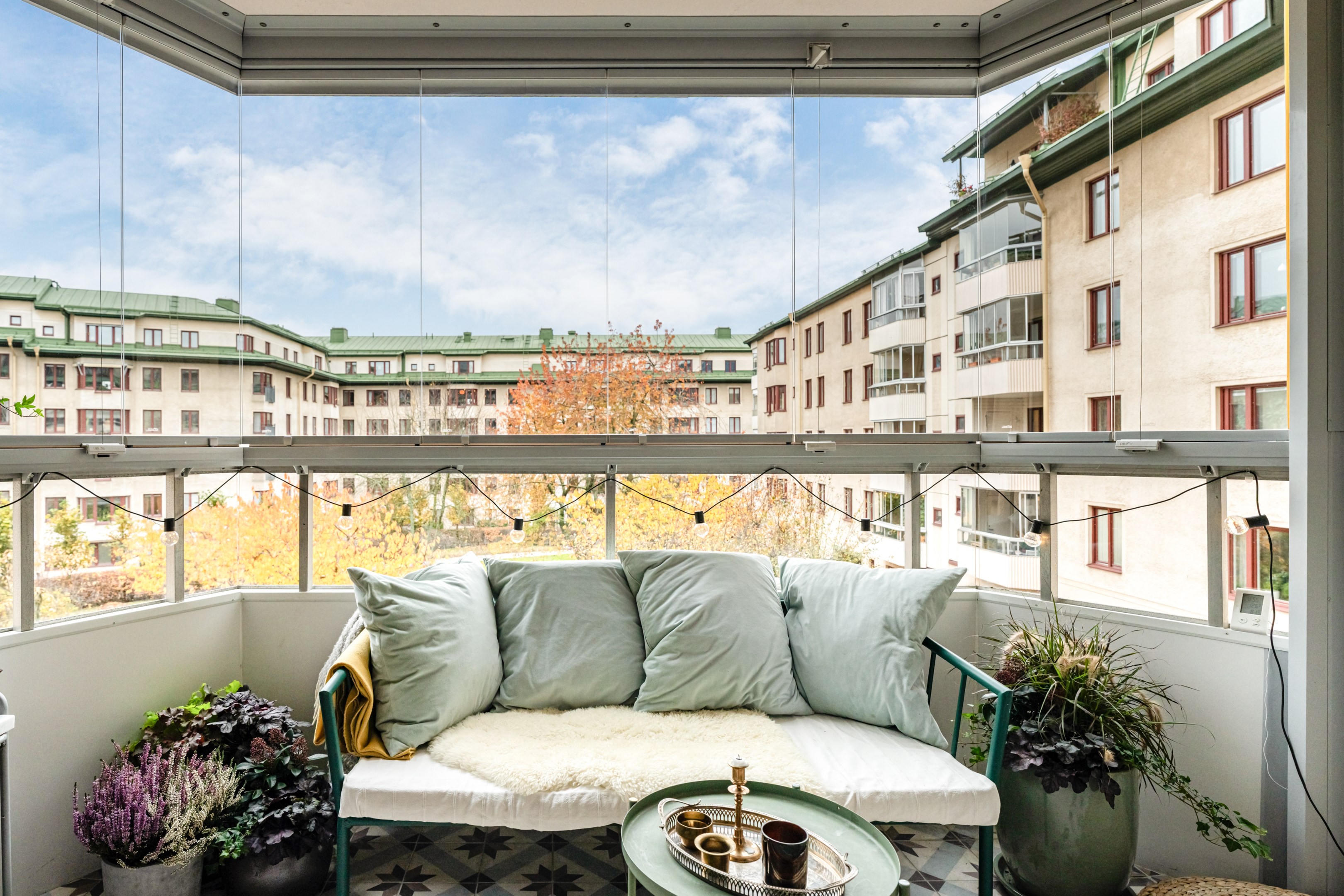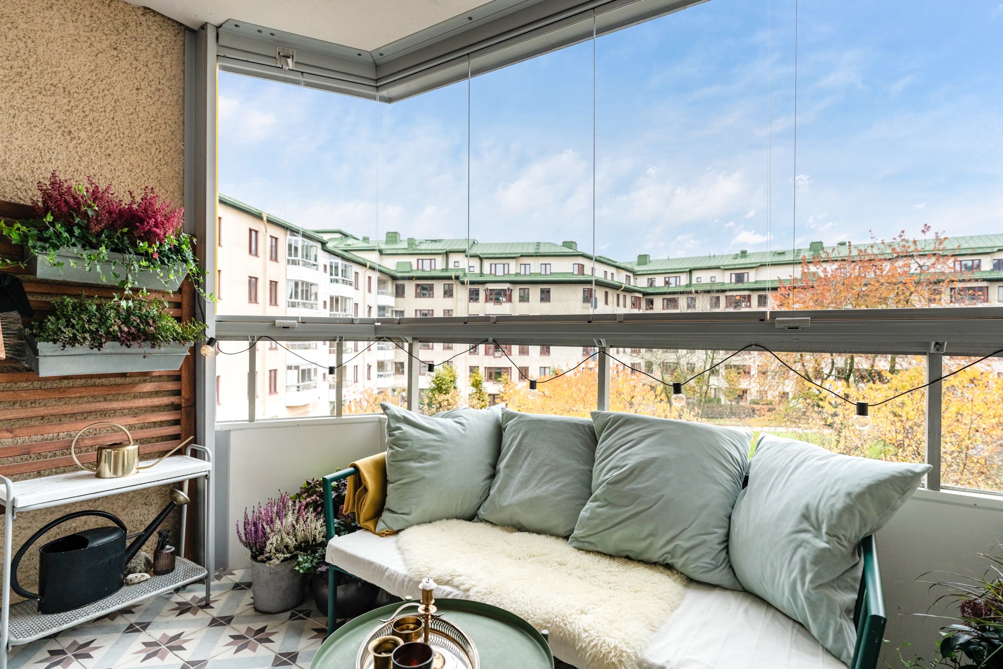 HALL Bra yteffektiv hall med gott om plats för avhängning av ytterkläder och skor. Platsbyggd hatt- och skohylla samt dubbla garderober med sidohylla (garderobsdörrar med speglar). Hallen har målade vita väggar och golvet är ett slipat svart granitgolv. KÖK Trivsamt och rymligt familjekök, så gott som insynsfritt mot Vintertullstorget. Stora härliga fönsterpartier med fritt läge som erbjuder utsikt mot träd och charmiga Orionteatern. Det finns plats för stort matbord och ytterligare umgänge på den platsbyggda bänken i burspråk mot torget. Här kan man ta sin morgonkaffe och njuta av utsikten! För den matlagningsintresserade finns generösa arbetsytor på den ljusa Carraramarmorn som löper runt kökets väggar. Gott om plats för förvaring i under- och överskåp med släta ljusa köksluckor, nymålade i washed linnen-färg 2024. Den maskinella utrustningen består av kyl/frys med dubbeldörrar i rostfritt stål (2021), vinkyl (2021), häll/ugn och fläkt, integrerad diskmaskin, samt stor dubbeldiskho i matchande vitt porslin. Fina, ljust målade väggar. SOVRUM 1 Stort sovrum med fönster mot den härliga grönskan från det lugna torget. Rummet disponeras i dag som barnrum med enkelsäng. Det finns även gott om plats för dubbelsäng, sängbord och övrig förvaringsmöbel för den som önskar. Väggarna är målade i en lugn beige-grönblå kulör. VARDAGSRUM MED UTGÅNG TILL BALKONG Rymligt vardagsrum med underbart ljusinsläpp från stort fönsterparti med utgång till möblerbar inglasad balkong. Generöst vardagsrum där det ryms en stor soffgrupp för hela familjen, tv-möbel och övrigt möblemang. Vardagsrummet är målat i ljus svagt bruten kulör. BALKONG Balkong med fri sikt mot den rofyllda innergården som har sittplatser, lekplats samt fina planteringar. Den flexibla inglasningen förlänger säsongen för både växter och socialt nyttjande men ger också möjlighet att öppna upp utrymmet helt för dagar när man vill ha full kontakt med gårdens grönska. Balkongen passar lika bra för att underhålla gäster som för en ensam dag i soffan med en bok. Väggarna är delvis försedd med vitmålad träpanel och golvet har snyggt klinkergolv (stil Marrakech). Inglasningen gör att balkongen kan användas stora delar av året. I anslutning till balkongen finns ett rymligt förråd. SOVRUM 2 Rofyllt stort sovrum med fönster mot den lugna innergården. Sovrummet rymmer dubbelsäng samt garderobsvägg med skjutdörrar samt en korridor med känslan av en walk-in-closet. Väggarna är målade i sobert gråblå kulör. BADRUM Stort badrum med rymligt badkar och dusch med glasvägg. Gott om förvaringsutrymme i både väl tilltagna överskåp och en kommod. Det finns en kombinerad TM/TT och praktisk arbetsbänk i ek och vägghängd wc-stol samt stilren handdukstork. Samtliga möbler, dusch/badkar, toalett är utbytta 2023. Väggarna är helkaklade i vitt och golvet är ett klinkergolv (stil Marrakech). FÖRRÅD Bostaden disponerar ett källarförråd.