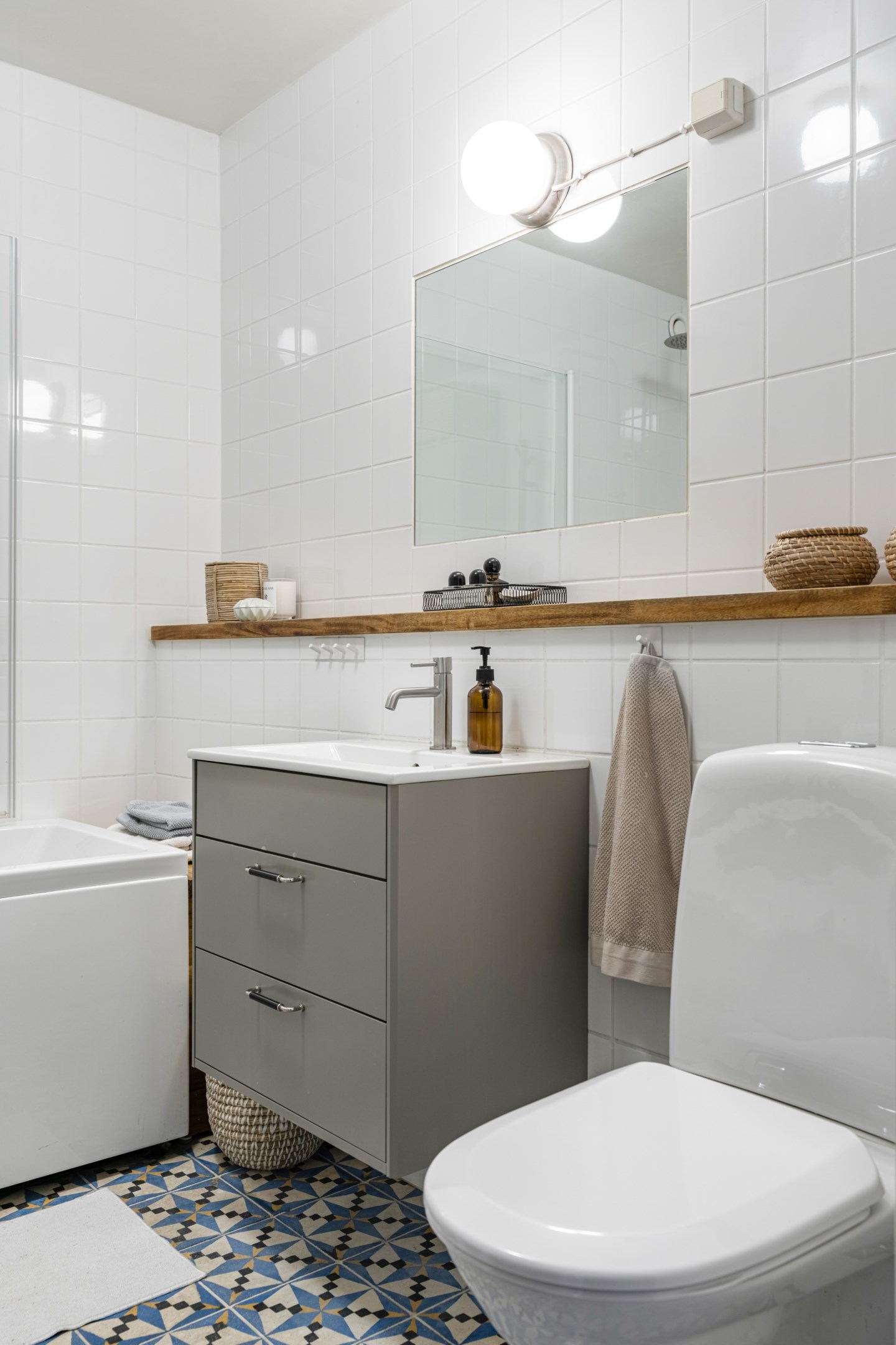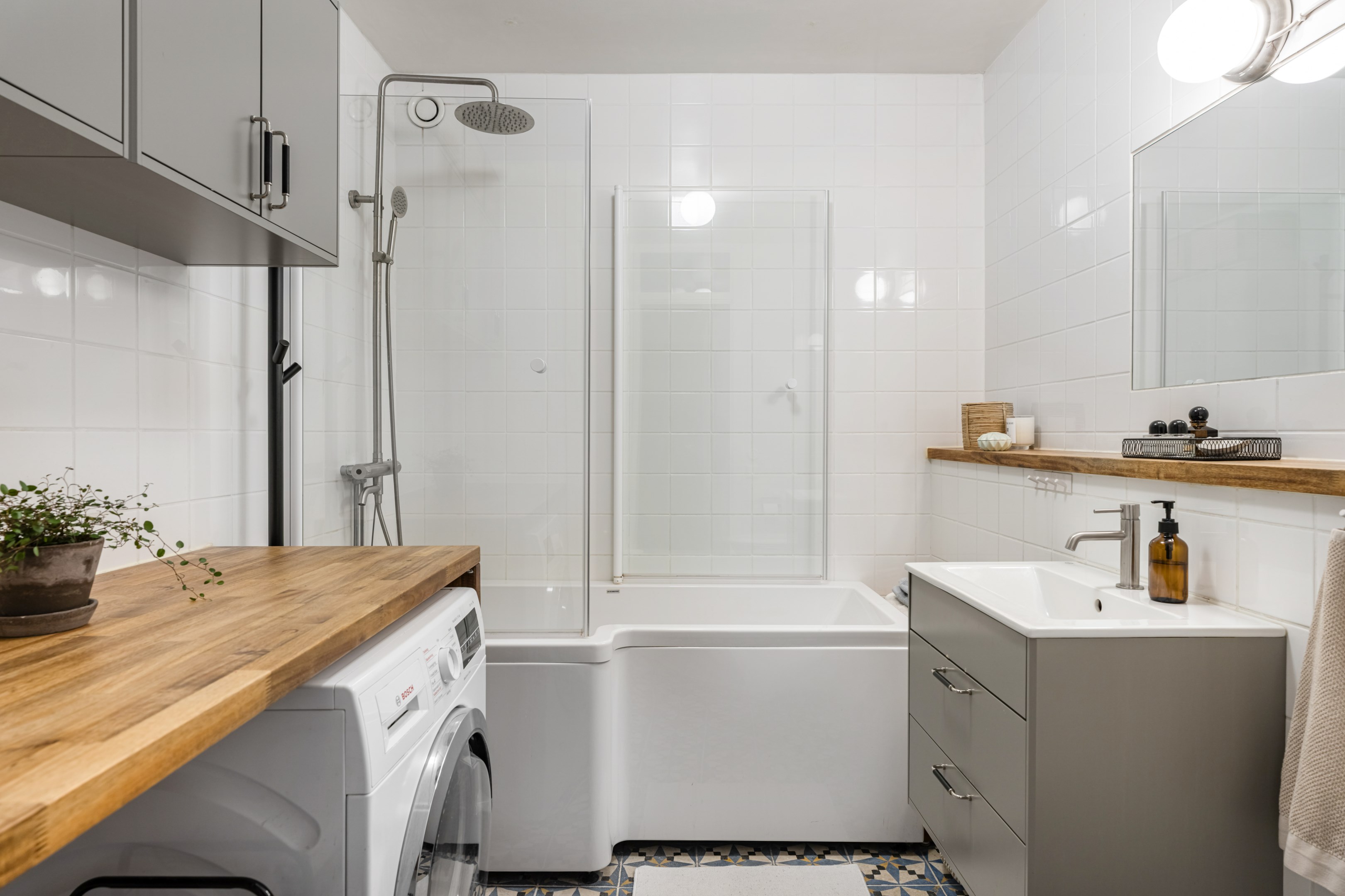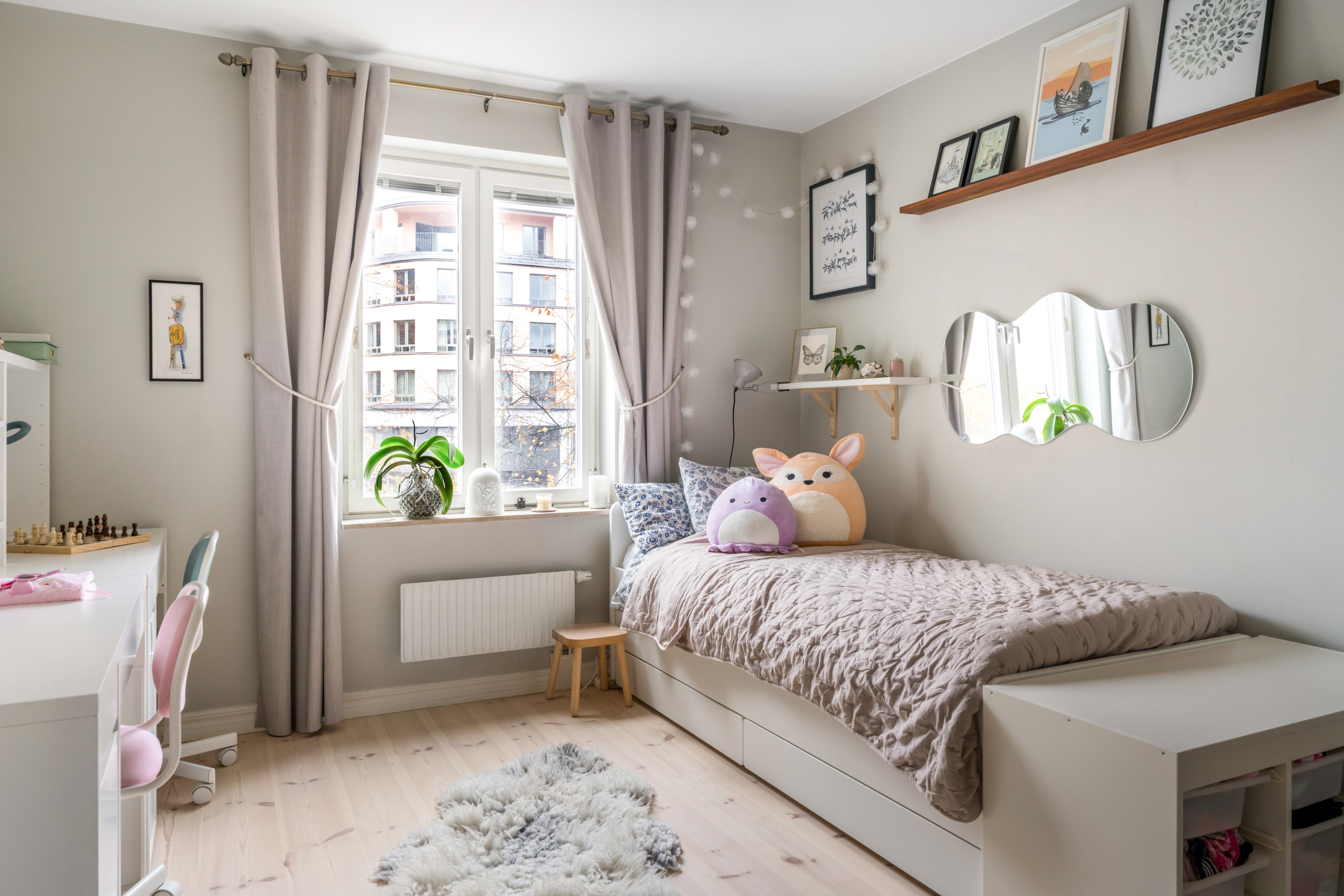 HALL Bra yteffektiv hall med gott om plats för avhängning av ytterkläder och skor. Platsbyggd hatt- och skohylla samt dubbla garderober med sidohylla (garderobsdörrar med speglar). Hallen har målade vita väggar och golvet är ett slipat svart granitgolv. KÖK Trivsamt och rymligt familjekök, så gott som insynsfritt mot Vintertullstorget. Stora härliga fönsterpartier med fritt läge som erbjuder utsikt mot träd och charmiga Orionteatern. Det finns plats för stort matbord och ytterligare umgänge på den platsbyggda bänken i burspråk mot torget. Här kan man ta sin morgonkaffe och njuta av utsikten! För den matlagningsintresserade finns generösa arbetsytor på den ljusa Carraramarmorn som löper runt kökets väggar. Gott om plats för förvaring i under- och överskåp med släta ljusa köksluckor, nymålade i washed linnen-färg 2024. Den maskinella utrustningen består av kyl/frys med dubbeldörrar i rostfritt stål (2021), vinkyl (2021), häll/ugn och fläkt, integrerad diskmaskin, samt stor dubbeldiskho i matchande vitt porslin. Fina, ljust målade väggar. SOVRUM 1 Stort sovrum med fönster mot den härliga grönskan från det lugna torget. Rummet disponeras i dag som barnrum med enkelsäng. Det finns även gott om plats för dubbelsäng, sängbord och övrig förvaringsmöbel för den som önskar. Väggarna är målade i en lugn beige-grönblå kulör. VARDAGSRUM MED UTGÅNG TILL BALKONG Rymligt vardagsrum med underbart ljusinsläpp från stort fönsterparti med utgång till möblerbar inglasad balkong. Generöst vardagsrum där det ryms en stor soffgrupp för hela familjen, tv-möbel och övrigt möblemang. Vardagsrummet är målat i ljus svagt bruten kulör. BALKONG Balkong med fri sikt mot den rofyllda innergården som har sittplatser, lekplats samt fina planteringar. Den flexibla inglasningen förlänger säsongen för både växter och socialt nyttjande men ger också möjlighet att öppna upp utrymmet helt för dagar när man vill ha full kontakt med gårdens grönska. Balkongen passar lika bra för att underhålla gäster som för en ensam dag i soffan med en bok. Väggarna är delvis försedd med vitmålad träpanel och golvet har snyggt klinkergolv (stil Marrakech). Inglasningen gör att balkongen kan användas stora delar av året. I anslutning till balkongen finns ett rymligt förråd. SOVRUM 2 Rofyllt stort sovrum med fönster mot den lugna innergården. Sovrummet rymmer dubbelsäng samt garderobsvägg med skjutdörrar samt en korridor med känslan av en walk-in-closet. Väggarna är målade i sobert gråblå kulör. BADRUM Stort badrum med rymligt badkar och dusch med glasvägg. Gott om förvaringsutrymme i både väl tilltagna överskåp och en kommod. Det finns en kombinerad TM/TT och praktisk arbetsbänk i ek och vägghängd wc-stol samt stilren handdukstork. Samtliga möbler, dusch/badkar, toalett är utbytta 2023. Väggarna är helkaklade i vitt och golvet är ett klinkergolv (stil Marrakech). FÖRRÅD Bostaden disponerar ett källarförråd.