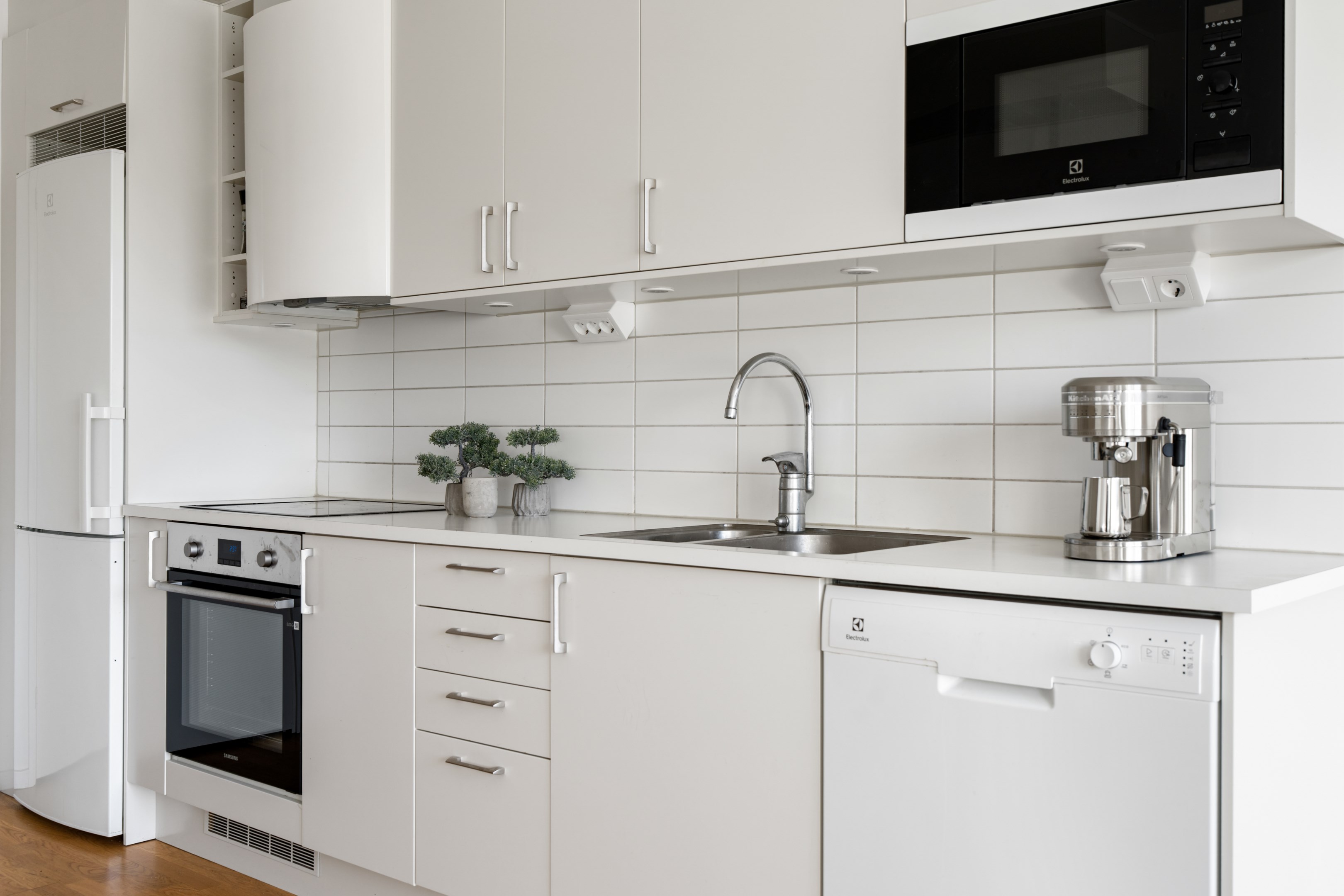Välkommen till denna yteffektiva och fina gavellägenhet på 43 kvm - stor, möblerbar balkong med attraktivt sydvästligt läge! Tack vare ordentlig rumshöjd och mycket glas ger arkitekturen en luftig känsla. Den moderna planlösningen erbjuder ett modernt, fullutrustat kök i öppen planlösning mot vardagsrummet. Ett stort och högt fönsterparti ger rymd och ljus och utgång till balkongen. Köket är utrustat med kyl/frys, häll/ugn, fläkt, diskmaskin och mikro. Det finns gott om utrymme för förvaring i över- och underskåp med vitlackerade luckor. Stort helkaklat badrum i vitt med dusch och duschvägg i glas, handdukstork, wc, handfat med kommod och spegelskåp, samt tvättmaskin och torktumlare 'side-by-side'. Trevlig entré och stort förråd som är tillgängligt från lägenheten. Fastigheten har ett fint och bra läge i området som erbjuder en varierad bebyggelse. Föreningen äger marken och byggåret är 2018. Föreningen har 138 bostäder och takterrass. Stadsdelen har fina omgivningar med närhet till badplatser, gym, restauranger samt Arninge Centrum och Roslagsbanan och erbjuder en hög servicegrad. På nära avstånd finns promenadspår efter Ullnasjön med gångstigar, broar, utegym, kanaler, bryggor och lekplatser. Skavlöten erbjuder också många trevliga promenader, friluftsgård och badplats. Två närliggande golfbanor (Ullna GC och Arninge GK). Goda kommunikationer med buss till Danderyds Sjukhus, Täby Centrum, Kista Centrum, Stockholm C samt Norrtälje.